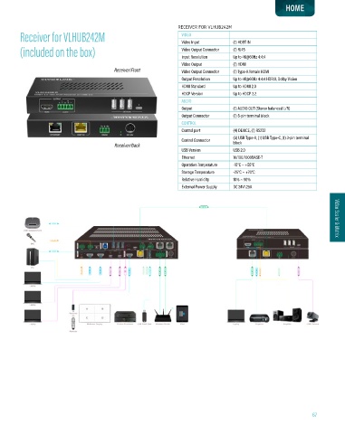Receiver for VLHUB242M VIDEO (1) HDBT IN